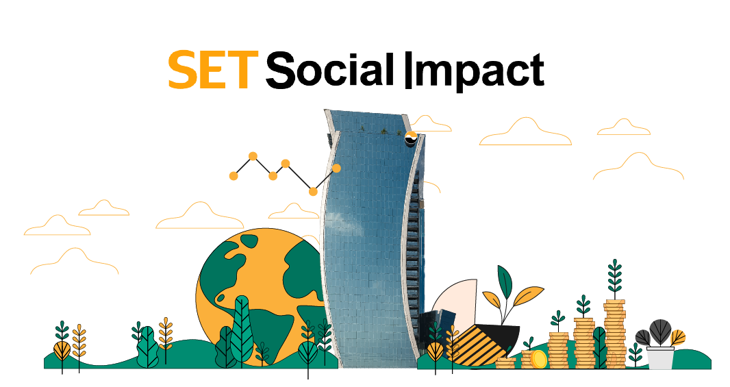 อย่างไรก็ดี การทำงานของตลาดหลักทรัพย์ฯ ในด้านการส่งเสริมการพัฒนาอย่างยั่งยืน ยังได้ขยายขอบเขต ไปสู่ภาคสังคมนอกเหนือจากผู้ร่วมตลาดทุน (Stakeholder) โดยผ่าน SET Social Impact platform โดยเริ่มขับเคลื่อนโฉมใหม่ของการขยายผลลัพธ์ทางสังคมตั้งแต่ปี 2016 ภายใต้แนวคิด “Social Impact Multiplier” กล่าวคือ เป็นการนำเอาศักยภาพเดิมของตลาดหลักทรัพย์ฯ ในการเป็นตัวกลางแลกเปลี่ยนความมั่งคั่ง โดยพัฒนาให้เป็นตัวกลางในการขยายเครือข่าย ขยายความร่วมมือ เพื่อขยายผลลัพธ์ทางสังคม ให้กว้างขวางไม่มีที่สิ้นสุด คำว่า Multiplier จึงหมายถึง “การทวีคูณผลลัพท์” จากการเชื่อมต่อคุณค่าของแต่ละองค์กร หรือการร่วมกันสร้างนวัตกรรมทางสังคม โดยเน้นให้การแก้ไขปัญหาสังคมผ่านการขับเคลื่อนด้วยกลไกธุรกิจ รวมทั้ง การสร้างระบบนิเวศ (ecosystem) เพื่อส่งเสริมให้เกิด Social Impact investment สร้างความยั่งยืนในการรับมือกับปัญหาทางสังคม และเป็นการผนวกการทำงานคู่ขนานระหว่างภาคสังคมและภาคธุรกิจ ซึ่งแตกต่างจากการขับเคลือนด้วยกลไกองค์กรการกุศลในอดีต