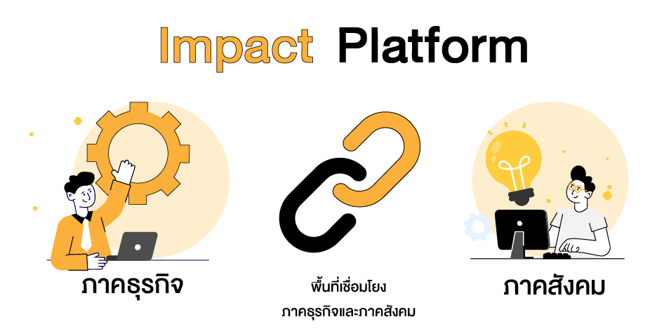 การทำงานของ SET Social Impact อยู่ในรูปของแพลตฟอร์ม ที่มีจุดเริ่มต้นจากการพัฒนาช่องทาง Online ในรูปของ Website และ Facebook เพื่อสร้างการเข้าถึงเรื่องราว ความรู้ และกิจกรรมร่วม เพื่อให้เกิดความร่วมมือสร้างสรรค์การพัฒนาสังคมอย่างยั่งยืน โดยออกแบบให้พื้นที่ดังกล่าว เป็นจุดเริ่มต้นของการเรียนรู้ อันจะนำไปสู่ปฏิสัมพันธ์ ระหว่างผู้ประกอบการทางสังคม Social Enterprise หรือ Impact Creator และผู้ประกอบธุรกิจ (Business sector) โดยนำเสนอการทำงานด้านสังคมของทั้ง 2 กลุ่มองค์กร