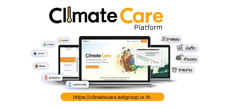 Climate Care Platform แพลตฟอร์มบริหารจัดการลดก๊าซเรือนกระจกในองค์กร ซึ่งดำเนินการมาตั้งแต่ปี 2563 ซึ่งเป็นเครื่องมือส่งเสริมให้ทุกภาคส่วนมีส่วนร่วมในการลดก๊าซเรือนกระจกในองค์กรตั้งแต่การวางแผนการจัดการทรัพยากรอย่างรู้คุณค่า และการจัดการขยะของเสียอย่างมีประสิทธิภาพด้วยการกำหนดเป้าหมาย บันทึกข้อมูลกิจกรรมการลด คำนวณ และสรุปผลการลดก๊าซเรือนกระจก
