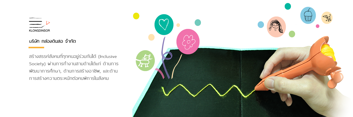 | บริษัทฯ ออกแบบและผลิตสื่อการศึกษาและของเล่นสำหรับเด็กพิการ ผลิตภัณฑ์แรกของบริษัทนคือ เล่นเส้น ชุดวาดเขียนสำหรับเด็กตาบอด ซึ่งปัจจุบันมีใช้งานในทุกโรงเรียนสอนคนตาบอดทั่วประเทศไทย และส่งออไปจำหน่ายยังต่างประเทศ เมื่อเดือนมีนาคม 2559 บริษัทฯได้ร่วมมือกับธนาคารยูโอบี จำกัด (มหาชน) จัดงานนิทรรศการกรุณาสัมผัส ซึ่งเป็นงานนิทรรศการที่เชื่อมโลกระหว่างคนตาบอดและคนตาดีเข้าด้วยกันผ่านงานศิลปะ | บริษัทฯ จัดฝึกอาชีพให้แก่คนพิการตามความสามารถของคนพิการประเภทนั้นๆ โดยโครงการที่อยู่ระหว่างการดำเนินการคือ การฝึกอบรม grphic designing ให้แก่คนหูหนวกเพื่อเข้าทำงานในสายงานกราฟฟิคดีไซน์ต่อไป | บริษัทฯ จัดกิจกรรมทางสังคมมากมายเพื่อแสดงให้เห็นว่าคนพิการก็สามารถอยู่ร่วมกับสังคมของเราได้ หากเราออกแบบสังคมให้เหมาะสมกับเขาด้วย เช่น พาน้องตาบอดไปดูหนัง (ร่วมกับ DTAC),กิจกรรมวิ่งด้วยกัน (ร่วมกับ Krungthai AXA) เป็นต้น | ||