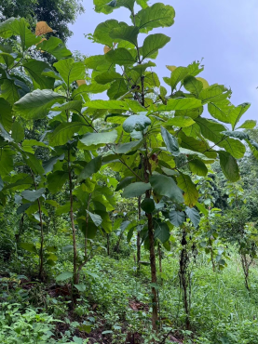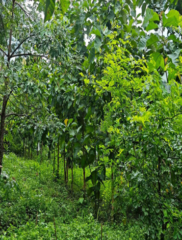 แปลงที่ 1 : ต้นไม้มีอัตราการรอดตายอยู่ที่ 95% และมีความสูงเฉลี่ยอยู่ที่ 310 - 355 เซนติเมตร ขนาดเส้นรอบวงของต้นไม้เฉลี่ย 22-30 เซนติเมตร ต้นไม้ที่เติบโตได้ดี ได้แก่ สัก มะขามป้อม หว้า พะยูง งิ้วดอกแดง และกัลปพฤกษ์ ชุมชนมีการจำกัดวัชพืชรอบโคนต้นไม้ในเดือนพฤษภาคม - กันยายน 2568 ที่ผ่านมา สภาพโดยรวมของป่ามีการเติบโตดี ต้นไม้ขนาดใหญ่หนาแน่นกว่าในปี 67 จนพื้นที่ปลูกป่าเชื่อมไปกับป่าโดยรอบแล้ว