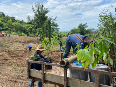 การฟื้นฟูดูแลระบบนิเวศจึงเป็นหน้าที่สำคัญของการดำเนินธุรกิจที่รับผิดชอบต่อสิ่งแวดล้อม พื้นที่ปลูกแปลงนี้มีความลาดชันสูงเพราะอยู่บริเวณเนินเขา มีดินปนทรายและมีวัชพืชจำนวนมาก การดูแลอย่างใส่ใจของทีม “ปลูกป้อง” พี่น้องชุมชนบ้านใหม่ จึงมีความสำคัญมาก อีกทั้งการวางแผนระบบน้ำหยดที่สูบน้ำจากแหล่งน้ำเพื่อการเกษตรขึ้นไปพักบนถังน้ำจุดสูงสุด และปล่อยผ่านสายยางไปยังต้นไม้ทุกต้น ในช่วงระยะเวลาที่ฝนทิ้งฤดู และการแบ่งจำนวนต้นไม้ให้รับผิดชอบดูแลรายคน ส่งผลดีต่อการปลูกในปีก่อนด้วยอัตราการรอดตายมากกว่า 90% และมีการดำเนินการปลูกซ่อมแซมดูแลให้ครบ 100% ตามเป้าหมาย