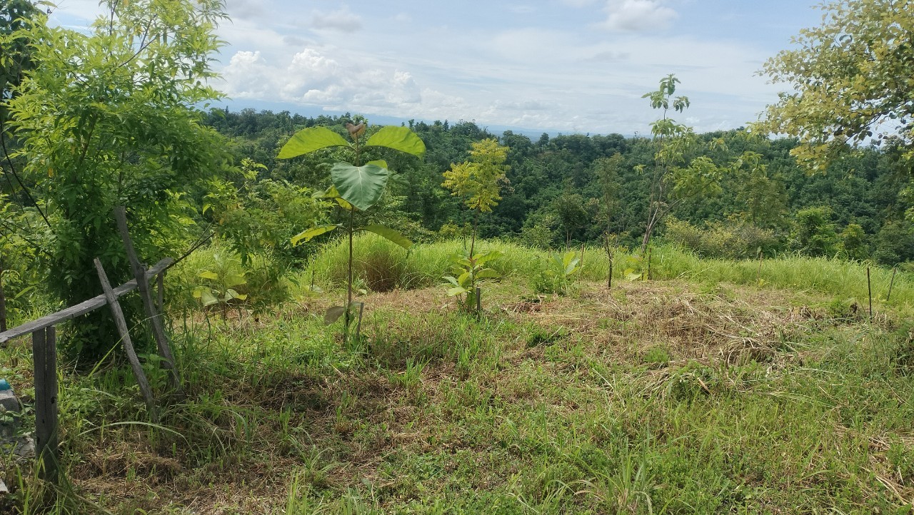 สมาชิกชุมชนและกรมป่าไม้ลงสำราจพื้นที่ปลูก เมื่อวันที่ 23 พฤษภาคม 2566 ที่ผ่านมา พบว่าต้นไม้ในพื้นที่ปลูกของป่าชุมชนทั้ง 2 แห่ง รวม 91 ไร่ ต้นไม้ที่ปลูก 18,200 ต้นมีสัดส่วนอัตรารอดตาย 90 % มีความสูงเฉลี่ย 60 cm ขนาดเส้นรอบวงประมาณ 3.5 cm ประเภทต้นไม้เติบโตได้ดี ได้แก่ ประดู่ สัก มะค่าโมง สะเดา ขี้เหล็ก มะขามป้อม ยางนา โดยในช่วงฤดูแล้งระหว่างเดือนธันวาคม 2565 – เมษายน 2566 เกิดฝนทิ้งช่วงเวลานาน กล้าไม้บางชนิด เช่น มะค่าโมง สัก ทิ้งใบตามธรรมชาติ ทำให้กล้าไม้หยุดการเจริญเติบโต และตายบ้างเล็กน้อย ในช่วงฤดูแล้งเกิดไฟป่าลามเข้ามาในพื้นที่แปลงปลูกบริเวณหมู่ 11 พื้นที่ประมาณ 3 % (3 ไร่) การลงพื้นที่ครั้งนี้จึงมีการปลูกซ่อม การลงสำรวจครั้งนี้ สมาชิกชุมชนได้ร่วมตัดหญ้า แผ้วถางวัชพืชรอบโคนต้น พรวนดิน ใส่ปุ๋ย และปลูกทดแทนต้นไม้ที่ตายแล้ว