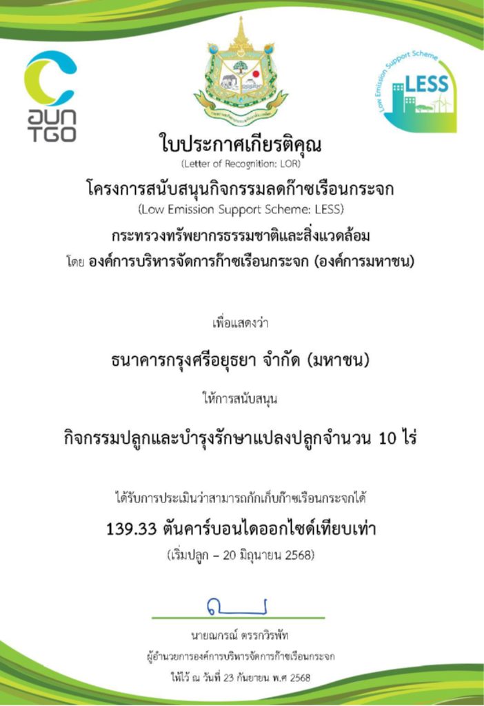ปี 2568 : การรับรองผลการประเมินปริมาณการลดก๊าซเรือนกระจก ภายใต้โครงการสนับสนุนกิจกรรมลดก๊าซเรือนกระจก (Low Emission Support Scheme: LESS) ครั้งที่ 1