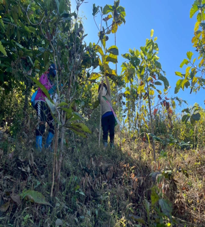 เมื่อเดือนพฤศจิกายน 2568 ที่ผ่านมา ทีมสมาชิกชุมชนและเจ้าหน้าที่กรมป่าไม้ ได้ลงพื้นที่ดูแลต้นไม้ที่ปลูกในแปลงที่ 2 เพื่อสำรวจการเติบโต ตรวจนับต้นไม้ที่ตายเพื่อปลูกซ่อมแซม โดยพบว่าอัตราการตายไม่ถึง 5% และดำเนินการปลูกซ่อมด้วย ต้นสัก ปลูกทดแทนต้นไม้ที่ตายจนสัดส่วนต้นไม้ที่รอดตายเท่ากับ 100% พบว่า ต้นไม้ที่ปลูกมีการเติบโตของต้นไม้มีการเจริญเติบโตอย่างดี และสามารถเติบโตได้ด้วยตัวเอง โดยไม่ต้องได้รับการดูแลอย่างใกล้ชิดมากเท่าตอนเริ่มต้นปลูกอีกต่อไป เฉลี่ยความสูงของต้นไม้ 1.5 – 1.7 เมตร