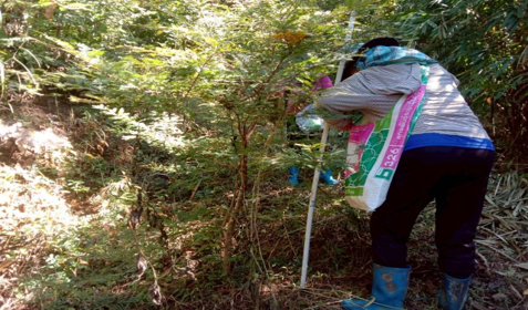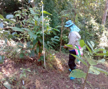 ผู้ใหญ่บ้านและครอบครัวสมาชิกชุมชนบ้านนาหวาย เตรียมพื้นที่บริเวณแปลงปลูก เช่น กำจัดวัชพืช เตรียมหน้าดิน ขุดแนวขัั้นบันได